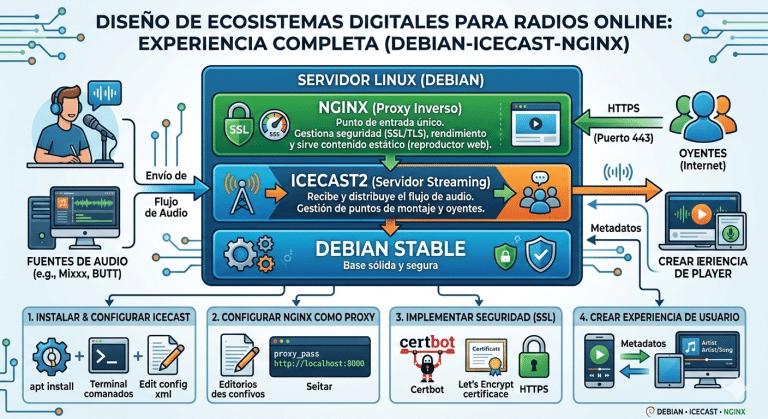 El diseño de ecosistemas digitales para radios online es el camino para que una emisora no solo suene, sino que también viva y crezca en internet. Este concepto significa que tu radio no es solo un reproductor, sino un conjunto de herramientas conectadas. Incluye tu web, redes sociales, aplicaciones, y formas de hablar con tus oyentes. Todo trabaja junto para dar una experiencia completa y atractiva. Pensar en un ecosistema digital ayuda a llegar a más gente y a que los oyentes se queden. Se trata de construir un mundo alrededor de tu sonido, donde todos puedan participar y disfrutar de lo que ofreces.